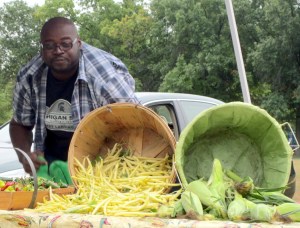 Robert Tolbert Sr. has come to both market locations all season long. Mr. Tolbert grows his produce in a plot in the Hillcrest Community Garden and at a garden on his own property. Last Saturday at Garfield Park, his wife, Jeannie, and son, Robert Jr. were on hand selling the bountiful turnips, collard greens, tomatoes, peppers, giant green beans, corn and peppers.