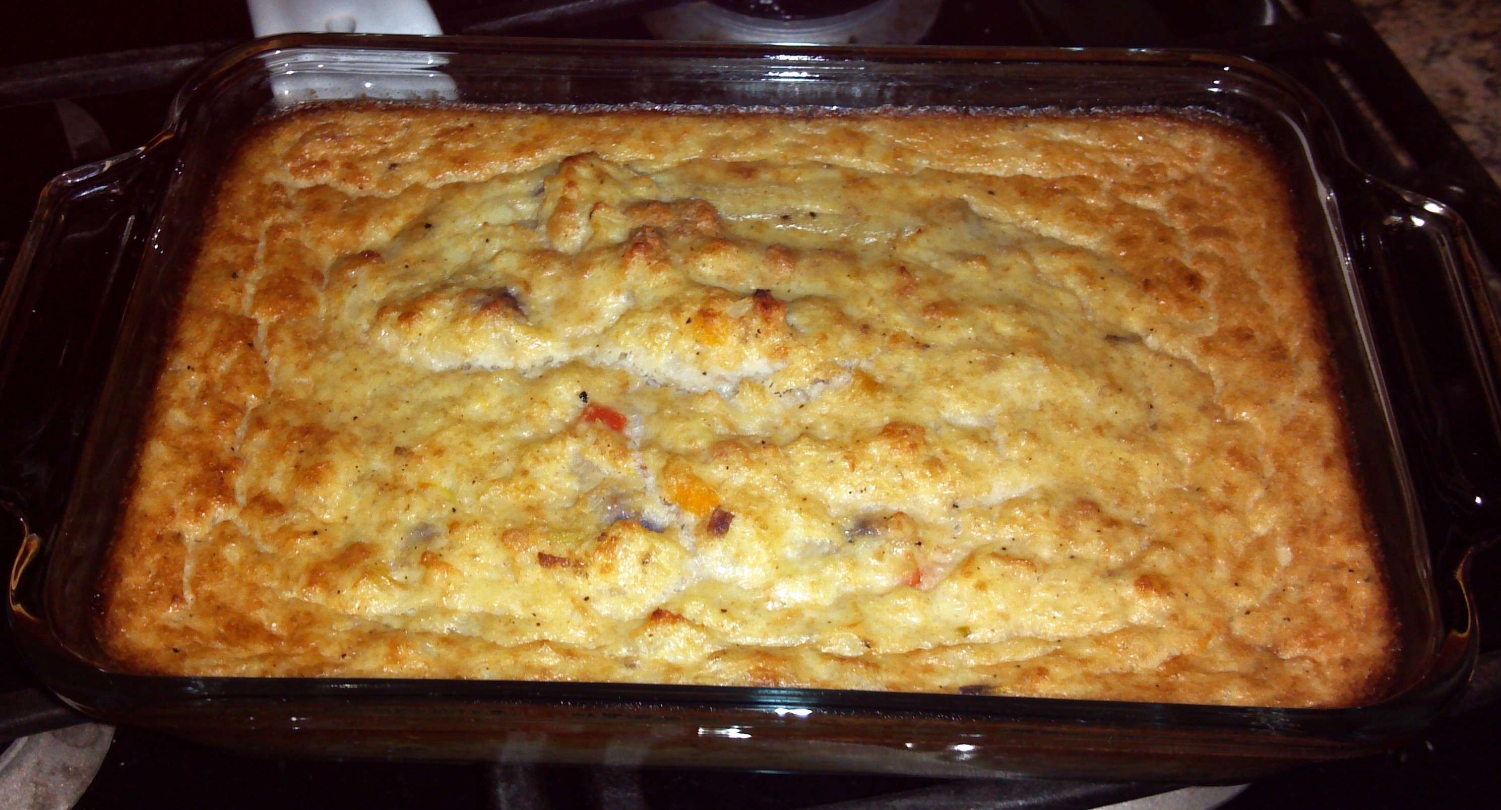 5. Pour mixture into a 1qt casserole dish sprayed with olive oil.