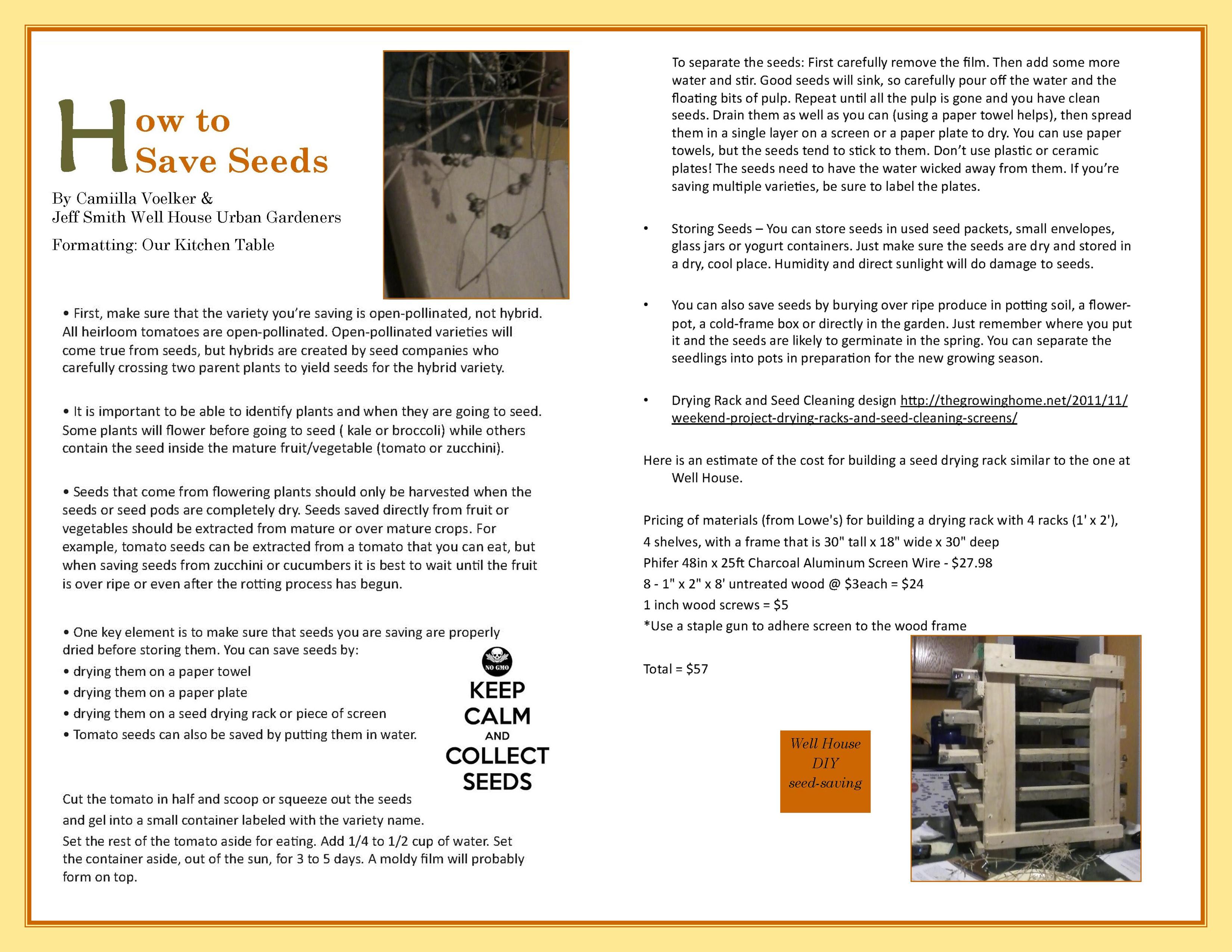 Using handouts provided by the Well House Seed Saving Workshop, OKT is releasing a zine, “How to Save Seeds” that addresses not only the how-to but also the political, environmental and health reasons for saving our own seeds. You can read it below or download a copy to print.