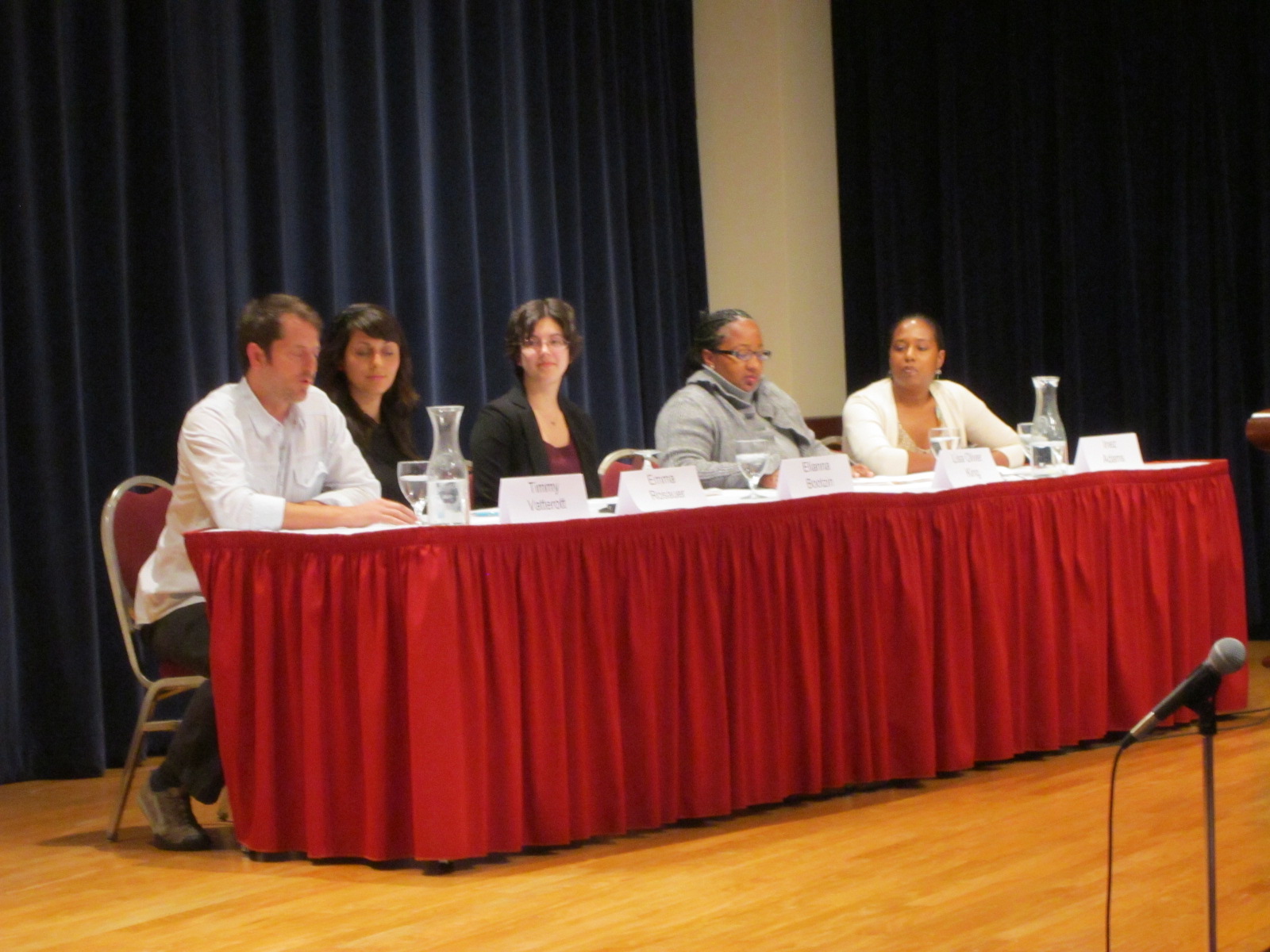 After the film, two women from Our Kitchen Table, executive director Lisa Oliver King and evaluater Inez Adams, were part of a panel that discussed the film. The panel also included Elianna Bootzin of Feeding America West Michigan,Emma Rosauer of Access of West Michigan and Timothy Vatterott, Dive’s producer and composer. Cynthia Price, the panel moderator, asked the panel about their reactions to the film and their thoughts on our “insane, corporate controlled food system.”