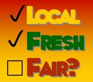 At your favorite restaurant, you ask the waiter, “Do you happen to know if the vegetables in this dish are grown locally?”  While perusing fruit at the grocery store, you find yourself wondering, “Just how fresh are these apples?”  The  local folks promoting the Fair Food campaign think these questions are important.