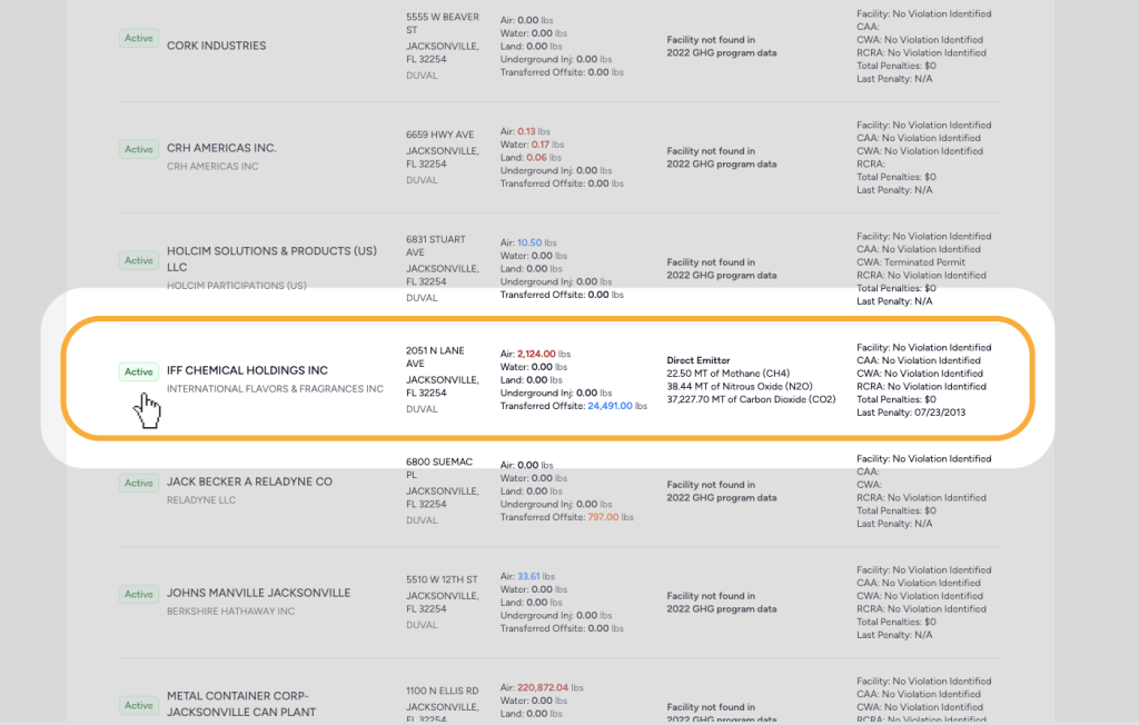 4.Click on the facility with the address closest to the factory you’re interested in.