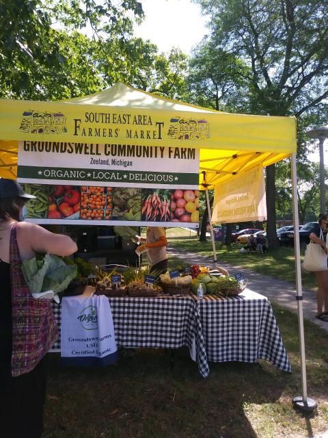 Stop by for organic, fresh, local produce from Groundswell Farm, tasty cottage kitchen goods, and handcrafted personal care items and crafts.